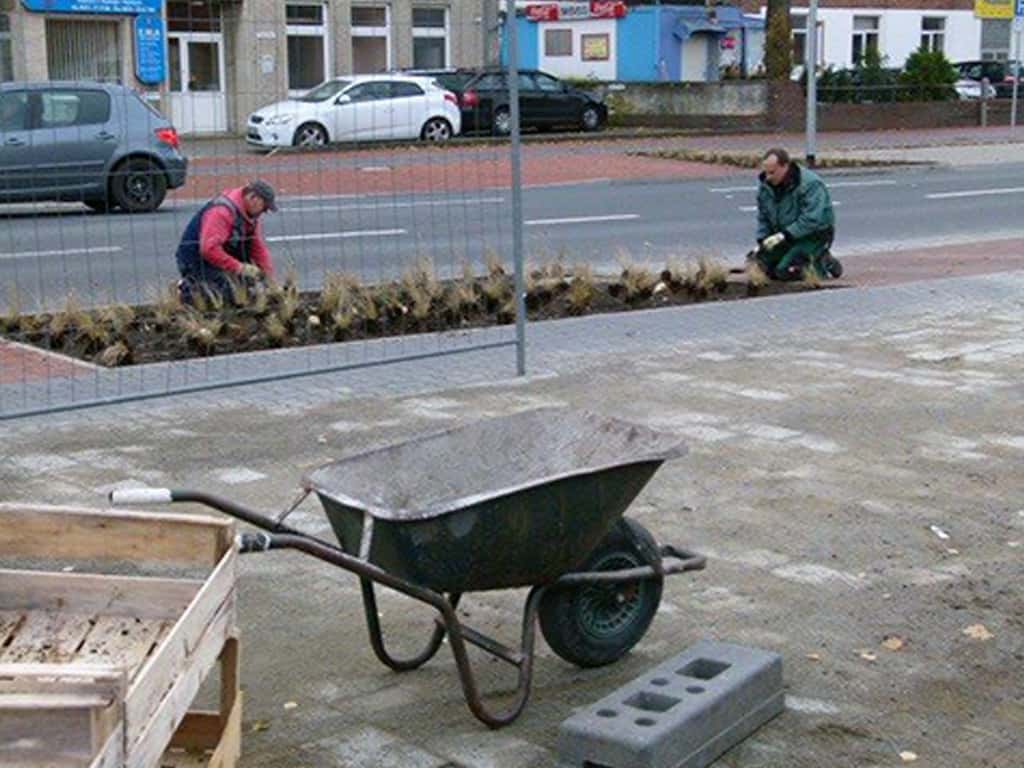 Umgestaltung des Platzes mit Pflaster- und Pflanzarbeiten